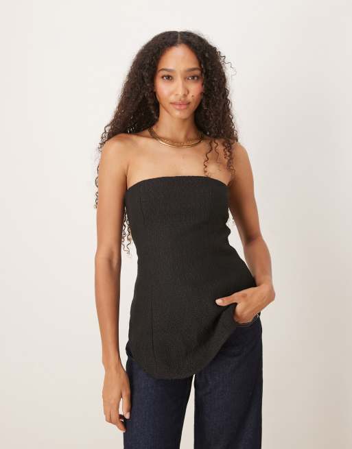 ASOS DESIGN tailored boucle curved hem peplum bandeau co-ord top in black
