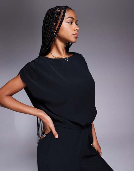 ASOS DESIGN tailored high neck crinkle textured co-ord top in black