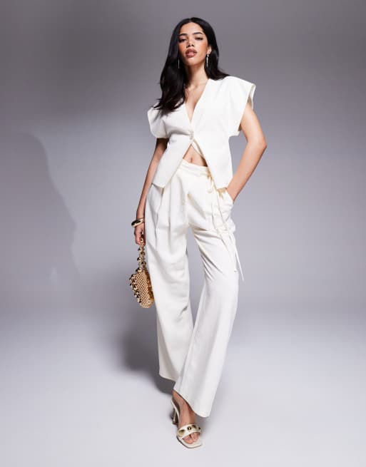 ASOS DESIGN tailored linen wrap tie trousers co-ord in ivory