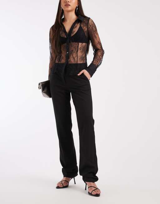 ASOS DESIGN tailored long skinny cigarette trousers in black