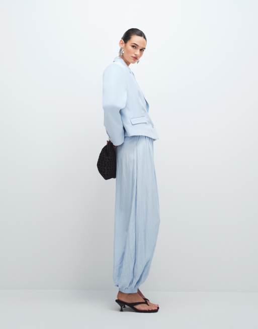ASOS DESIGN tailored oversized blazer with cuff hem trousers in soft blue