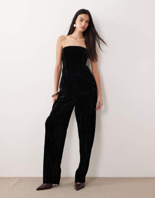 ASOS DESIGN tailored peplum bandeau and tapered trousers co-ord top in velvet black