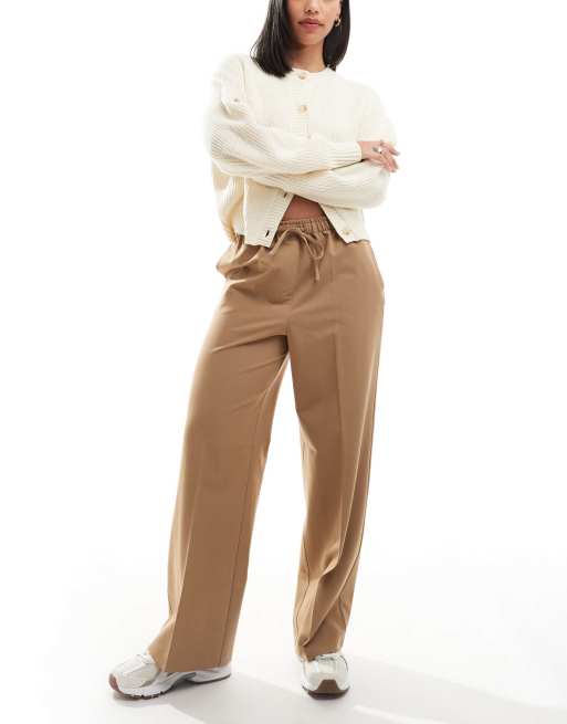 ASOS DESIGN tailored pull on trousers in camel
