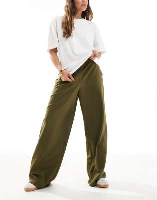 ASOS DESIGN tailored relaxed straight leg trousers in khaki