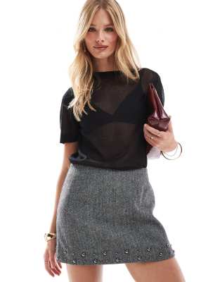 ASOS DESIGN tailored stud detail tailored mini skirt co-ord in grey - GREY