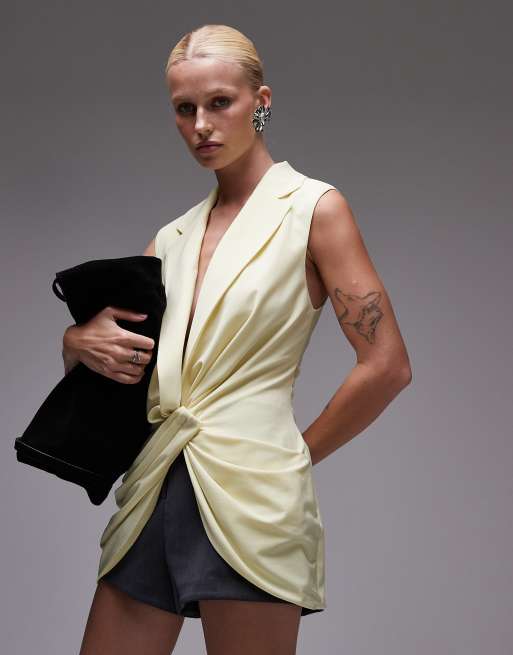ASOS DESIGN tailored twist front plunge waistcoat in buttermilk