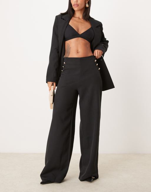 ASOS DESIGN tailored wide leg trouser with gold button detail in black