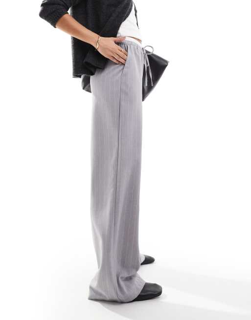 ASOS DESIGN tailored wide leg trousers with contrast waistband in grey stripe
