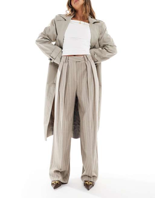ASOS DESIGN tailored wide leg trousers with pleat detail in stone