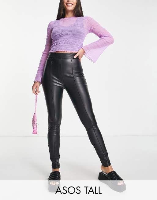 ASOS DESIGN Tall pintuck trouser in faux leather in black