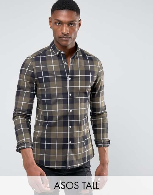 ASOS DESIGN Tall stretch slim twill check shirt
