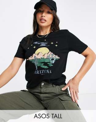 ASOS DESIGN Tall t-shirt with scenic print graphic in black
