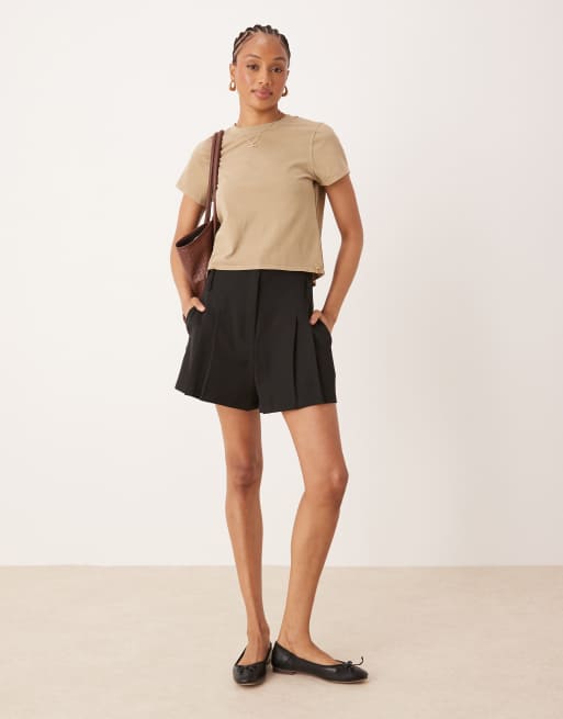ASOS DESIGN Tall tailored high waist belted shorts in black