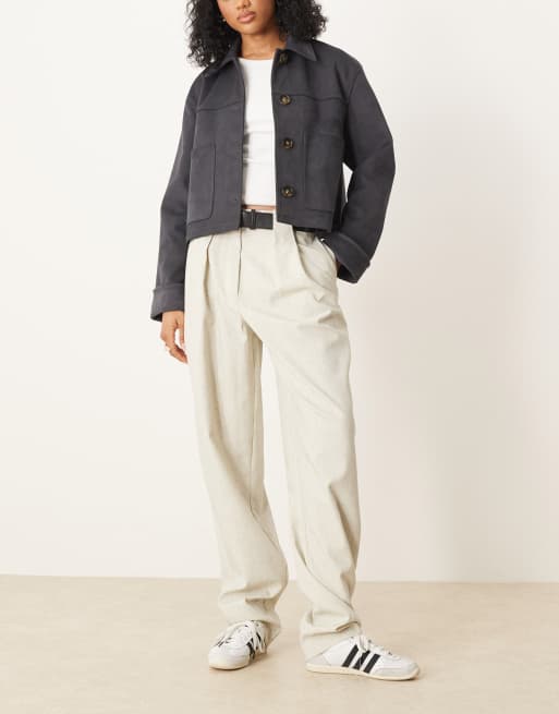 ASOS DESIGN Tall tailored textured barrel leg trousers with belt in off white