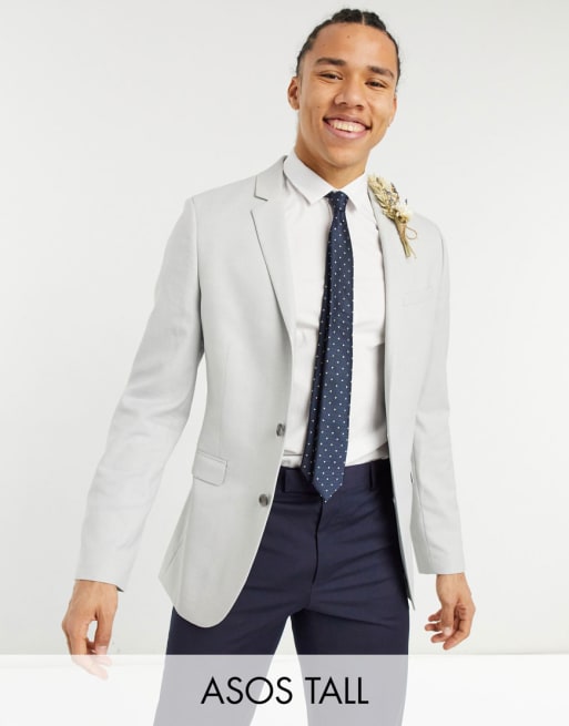 ASOS DESIGN Tall wedding super skinny suit in ice grey micro texture