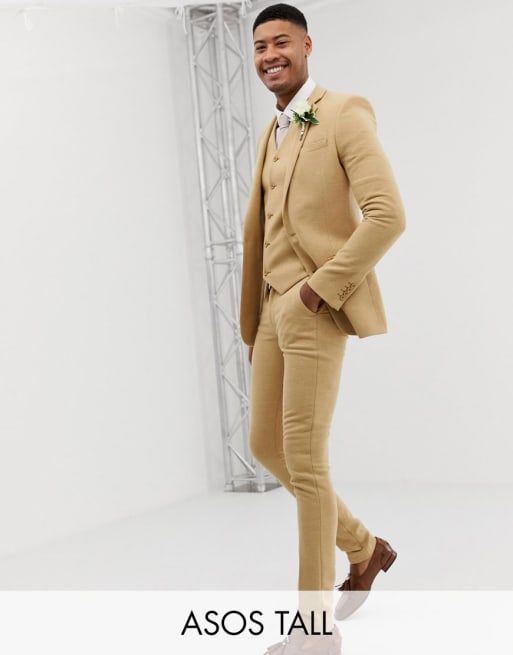 ASOS DESIGN Tall wedding super skinny suit in stone micro check