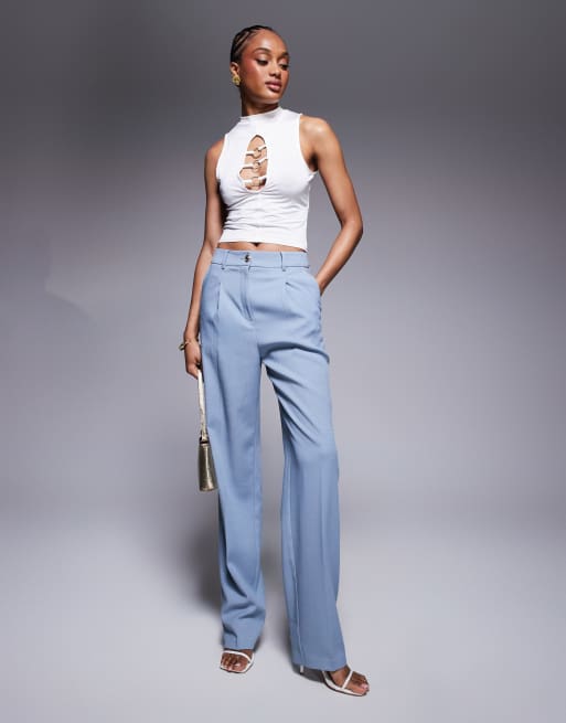 ASOS DESIGN Tall wide leg tailored trousers with gold buttons in blue