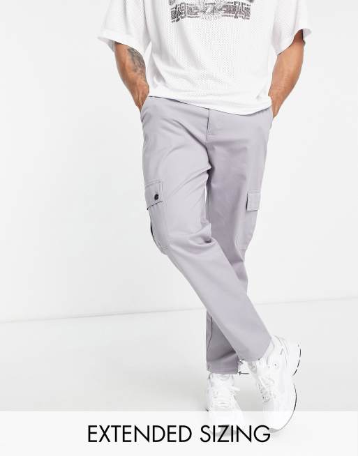 ASOS DESIGN tapered cargo trousers in lilac grey with toggles