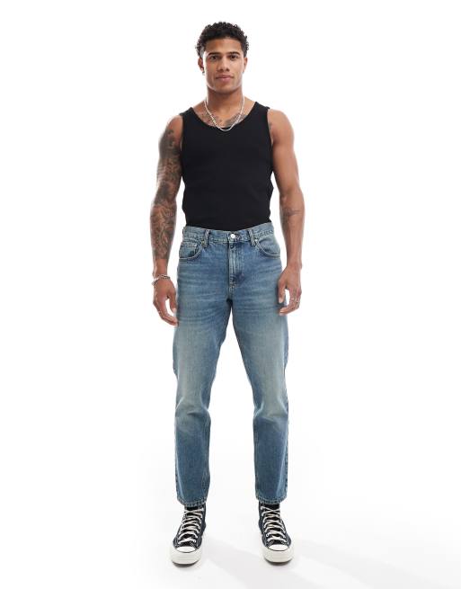 ASOS DESIGN tapered fit jeans in dark wash blue tint