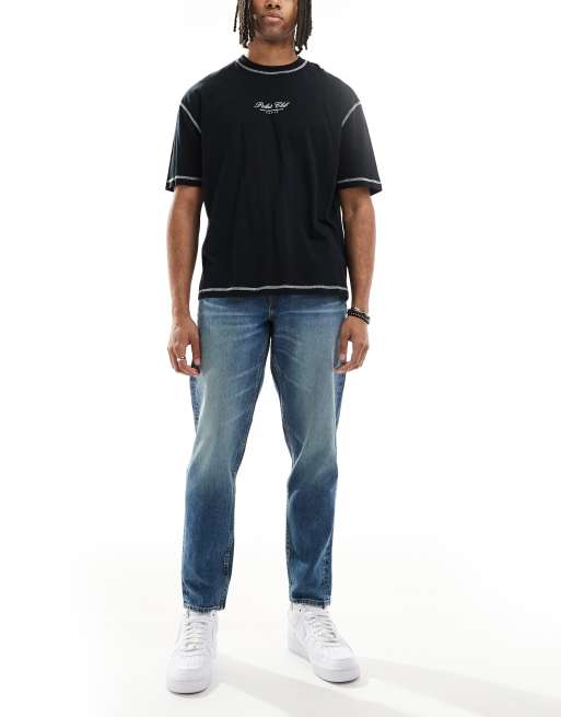 ASOS DESIGN tapered jeans with tint in dark wash blue