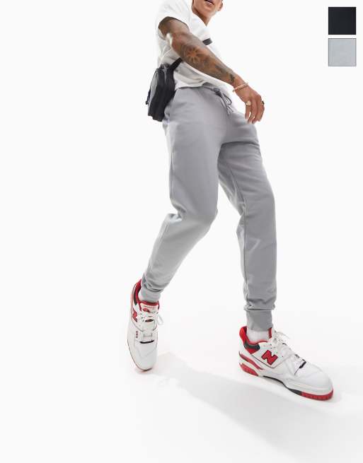 ASOS DESIGN tapered joggers in black & grey marl 2 pack