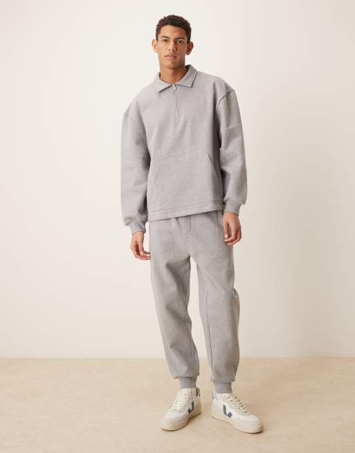 ASOS DESIGN tapered joggers with ribbed cuffs in grey marl