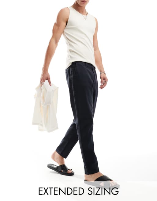 ASOS DESIGN tapered linen chino trousers in navy