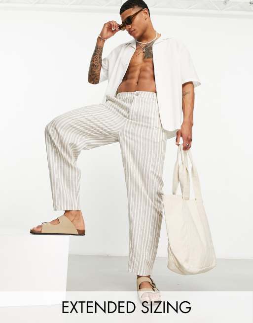ASOS DESIGN tapered linen mix trousers in brown stripe