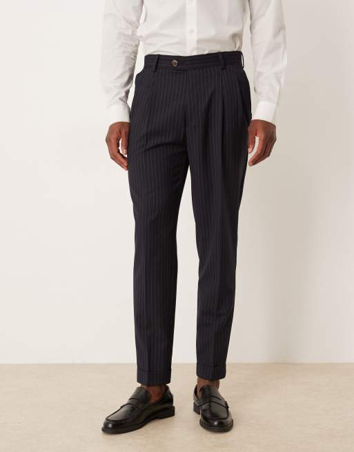 ASOS DESIGN tapered suit trouser in navy pinstripe