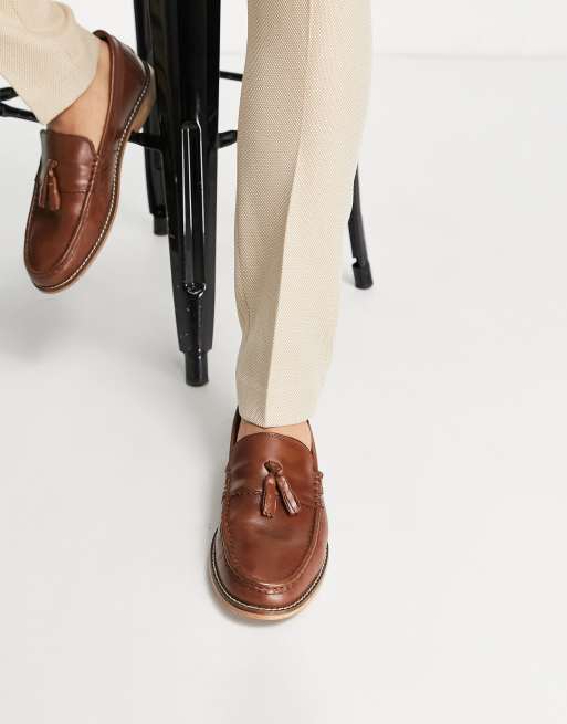 ASOS DESIGN tassel loafers in tan leather with natural sole