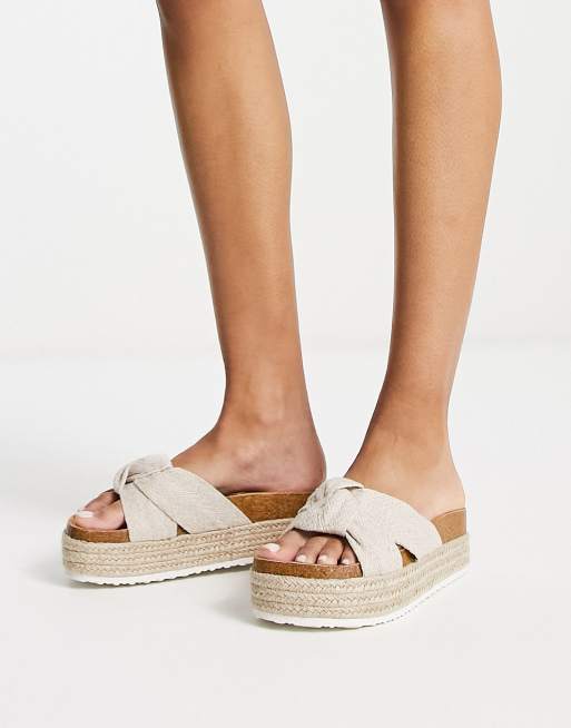 ASOS DESIGN Teegan knotted flatform sandals in natural fabrication