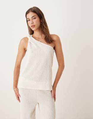 ASOS DESIGN texture crinkle tie shoulder top co-ord in cream