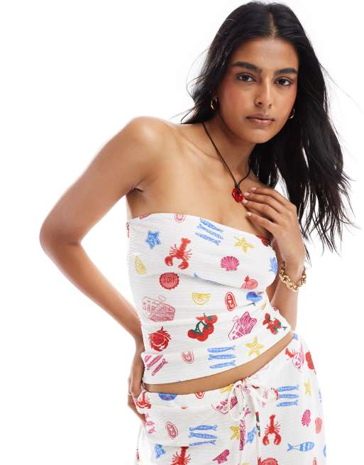 ASOS DESIGN textured bandeau co-ord in summer food print