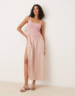 ASOS DESIGN textured bodice scoop neck midi dress with drape in blush pink