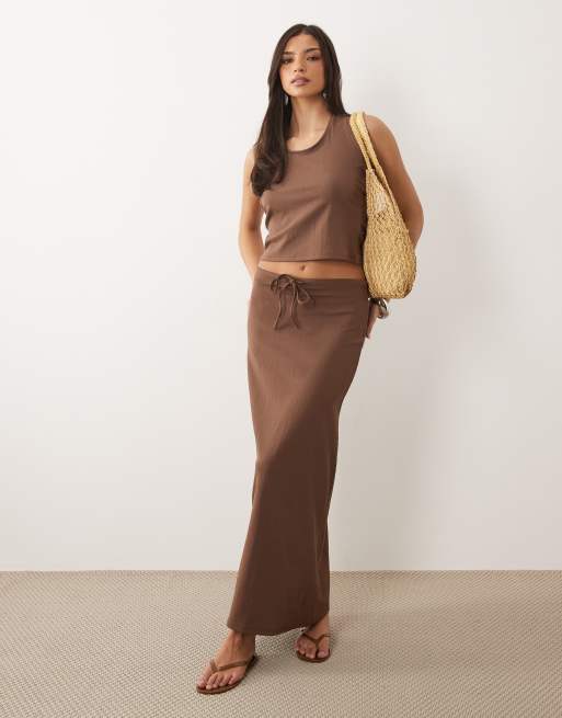 ASOS DESIGN textured crepe a line maxi skirt co-ord in chocolate