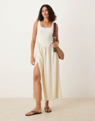 ASOS DESIGN textured crinkle bodice scroop midi dress in cream