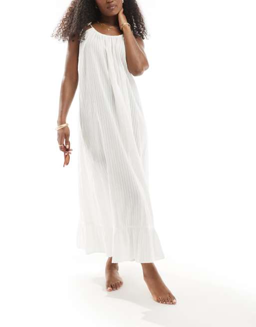 ASOS DESIGN textured dobby drop hem maxi beach dress in ivory