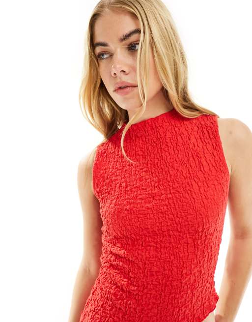 ASOS DESIGN textured high neck top co ord in red