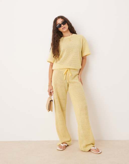 ASOS DESIGN textured jersey in wide leg trouser co-ord in lemon