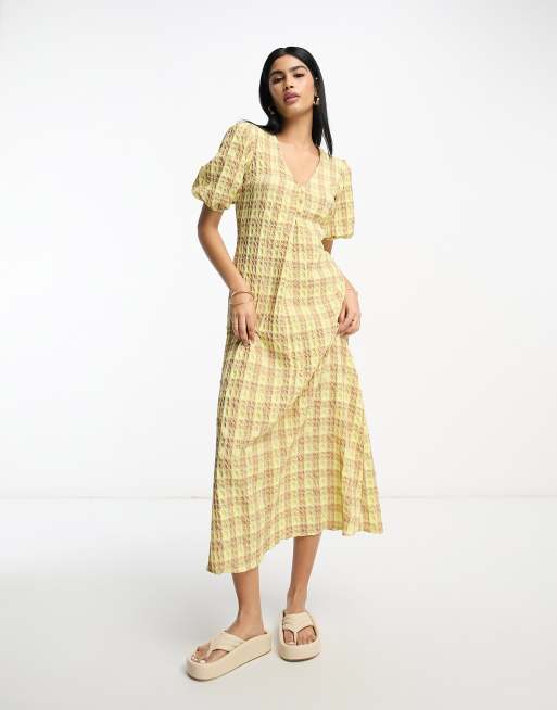 ASOS DESIGN textured midi tea dress in yellow check