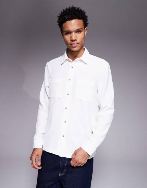 ASOS DESIGN textured overshirt in off white