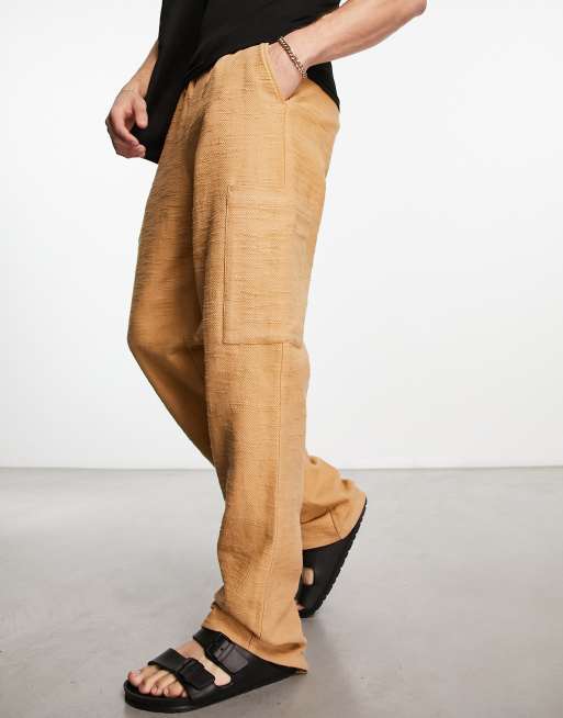 ASOS DESIGN textured relaxed cargo trousers in beige