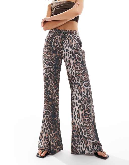 ASOS DESIGN textured wide leg trousers in animal print