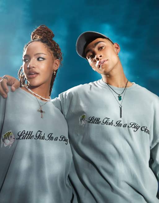 ASOS DESIGN - The Little Mermaid Unisex washed oversized t-shirt with puff print license graphic