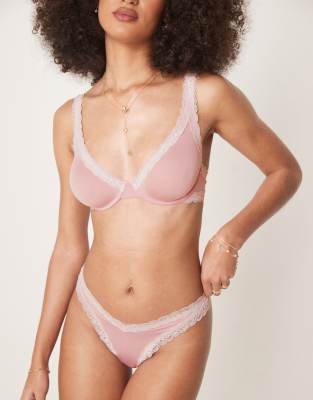ASOS DESIGN Tia super soft microfibre thong with lace trim in pink