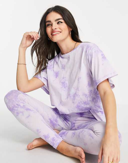 ASOS DESIGN tie dye tee & legging pyjama set in blue & lilac