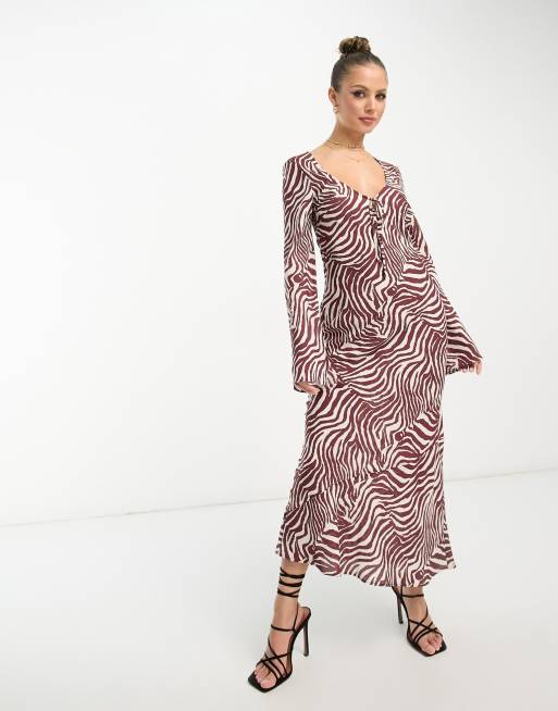 ASOS DESIGN tie front long sleeve midi dress in zebra print
