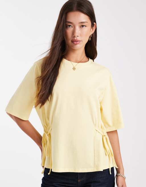 ASOS DESIGN tie waisted detail short sleeve top in yellow
