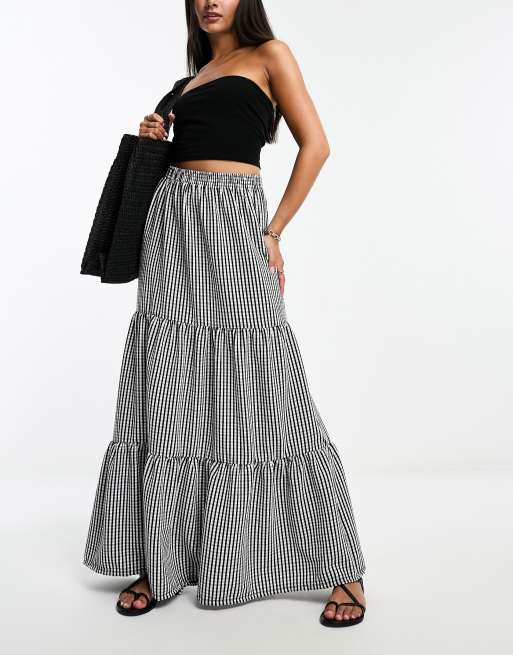 ASOS DESIGN tiered crinkle gingham maxi skirt in multi