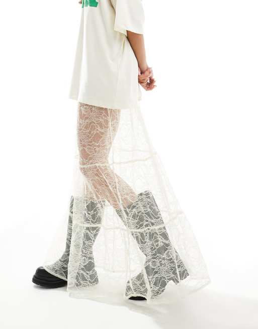 ASOS DESIGN tiered lace maxi skirt in ivory
